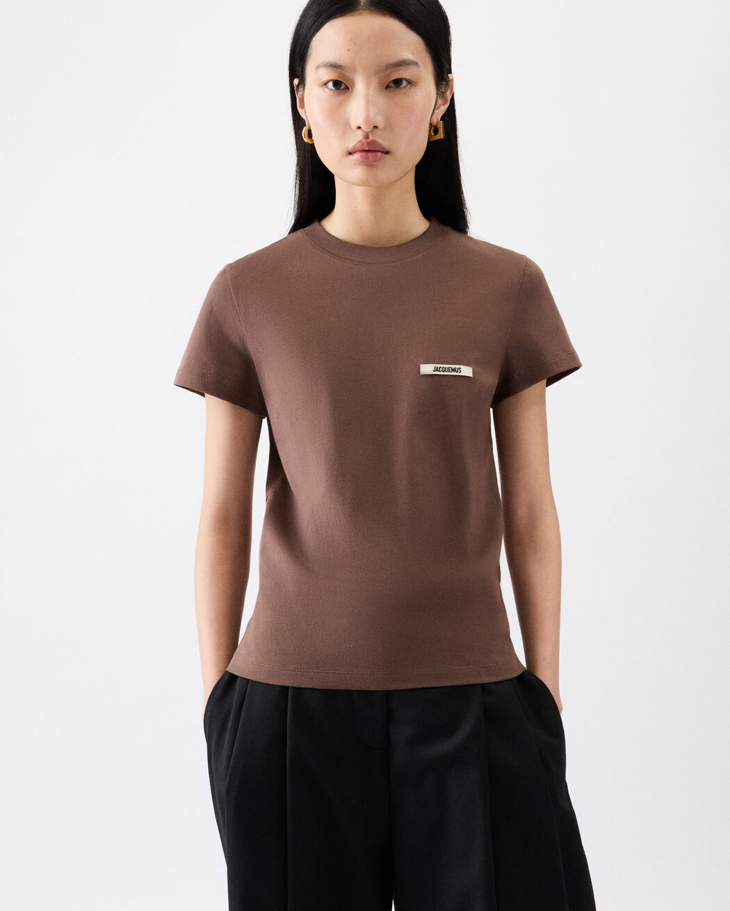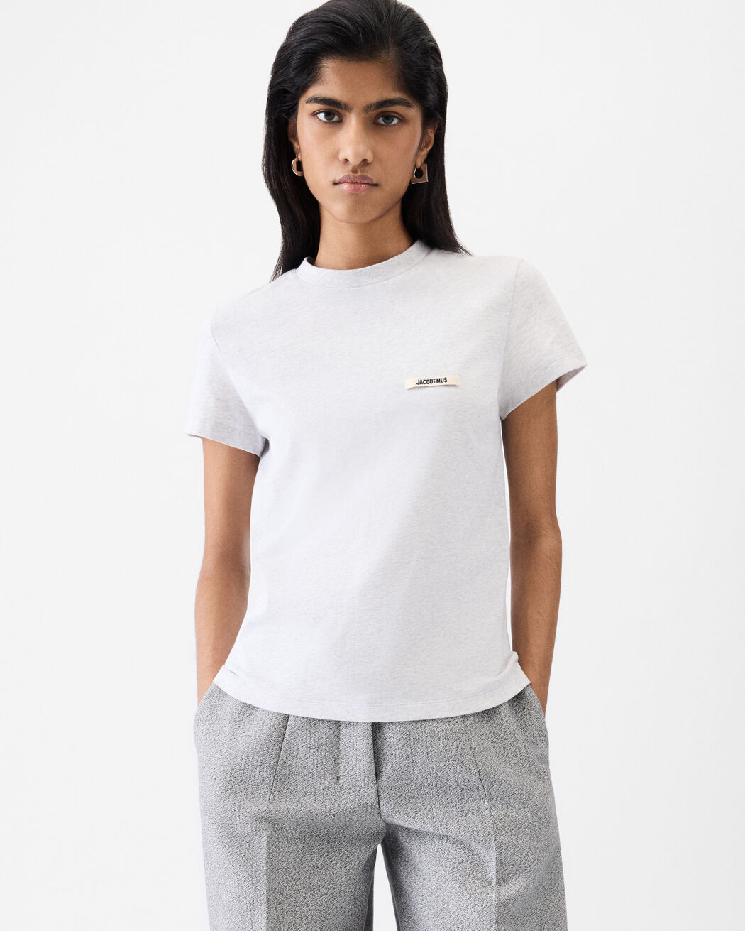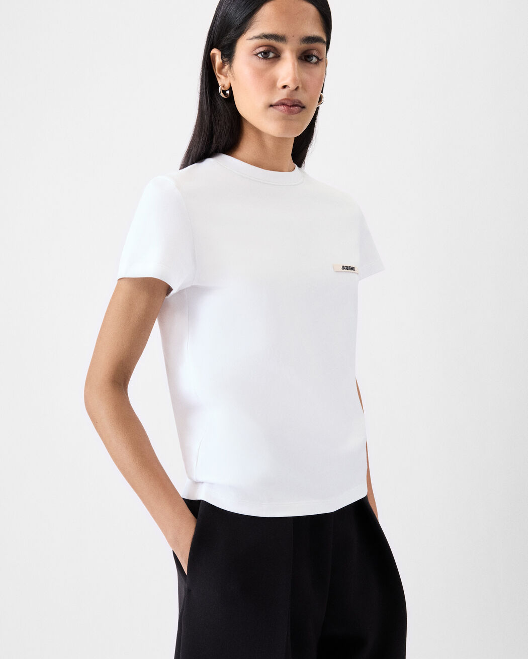 تي شيرت مزين بشعار الماركة من القماش المضلع.