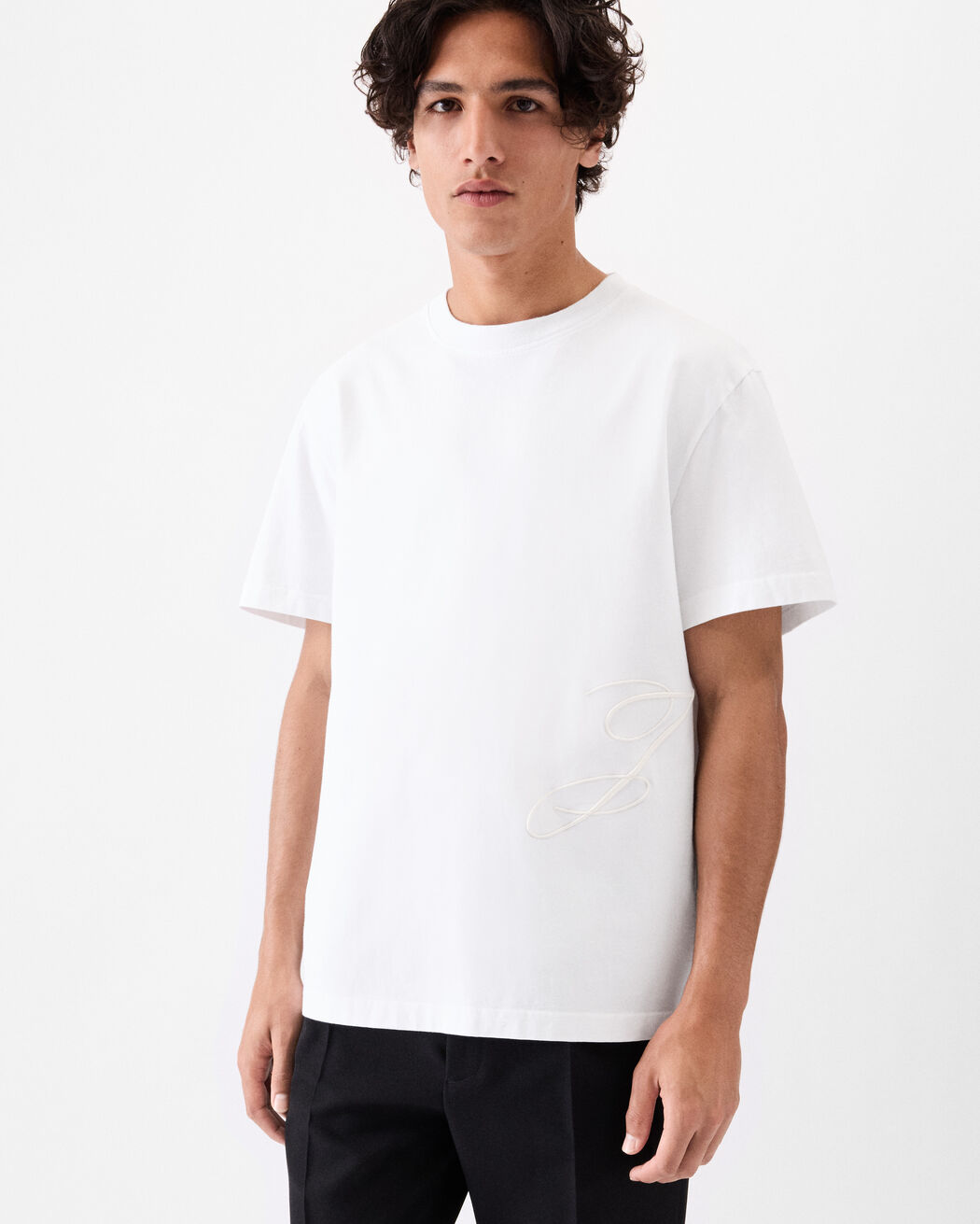 - شعار ماركة جاكيموس مطرز كبير الحجم بدرجات لون واحد