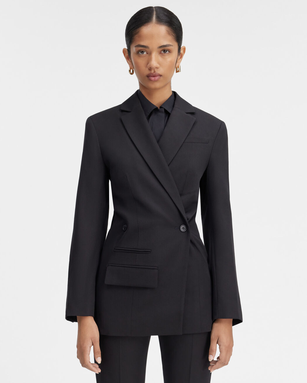 - جاكيت بقصة تناسب الجسم بأكتاف مبطنة
