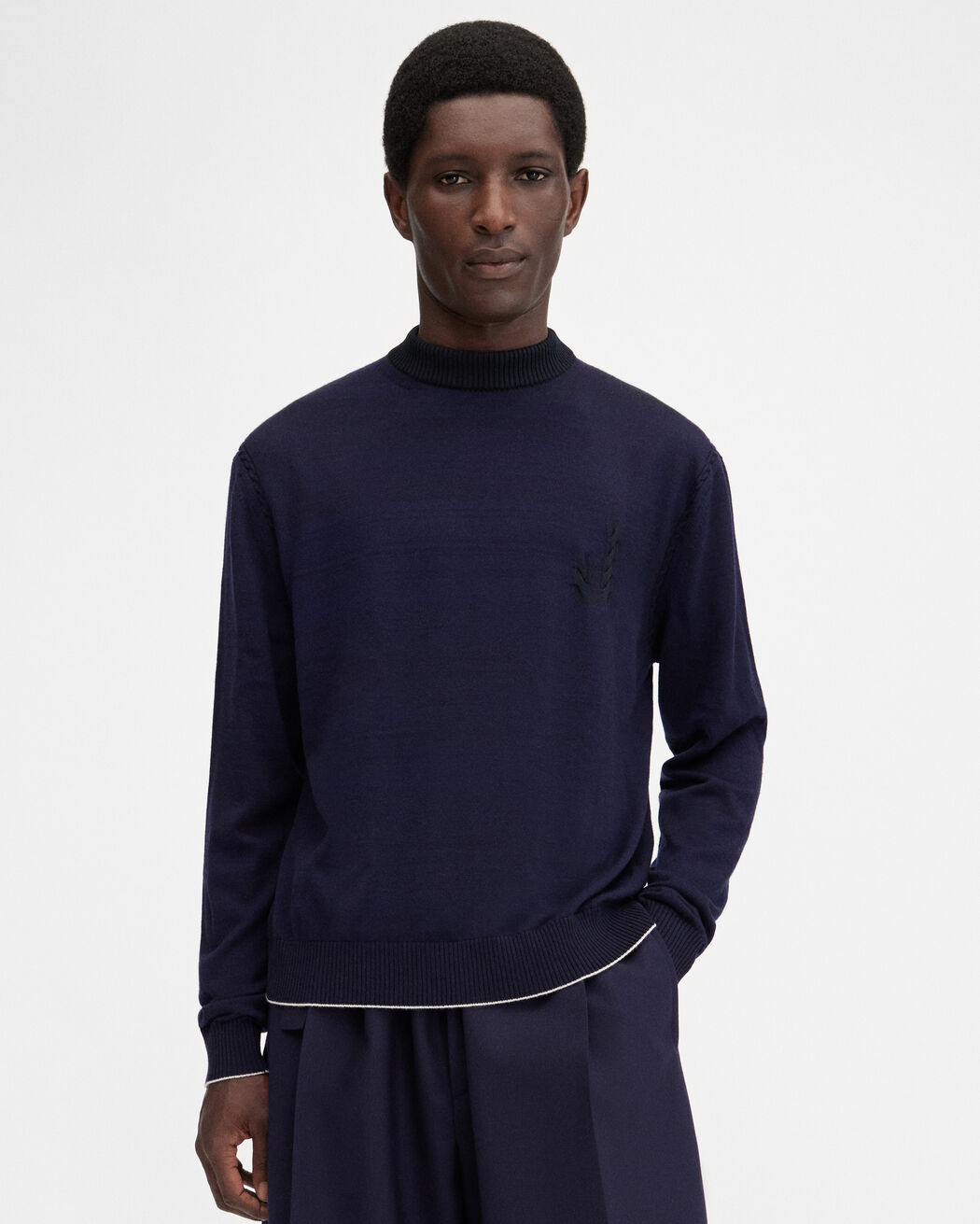 - ياقة وأساور أكمام وحافة مضلعة