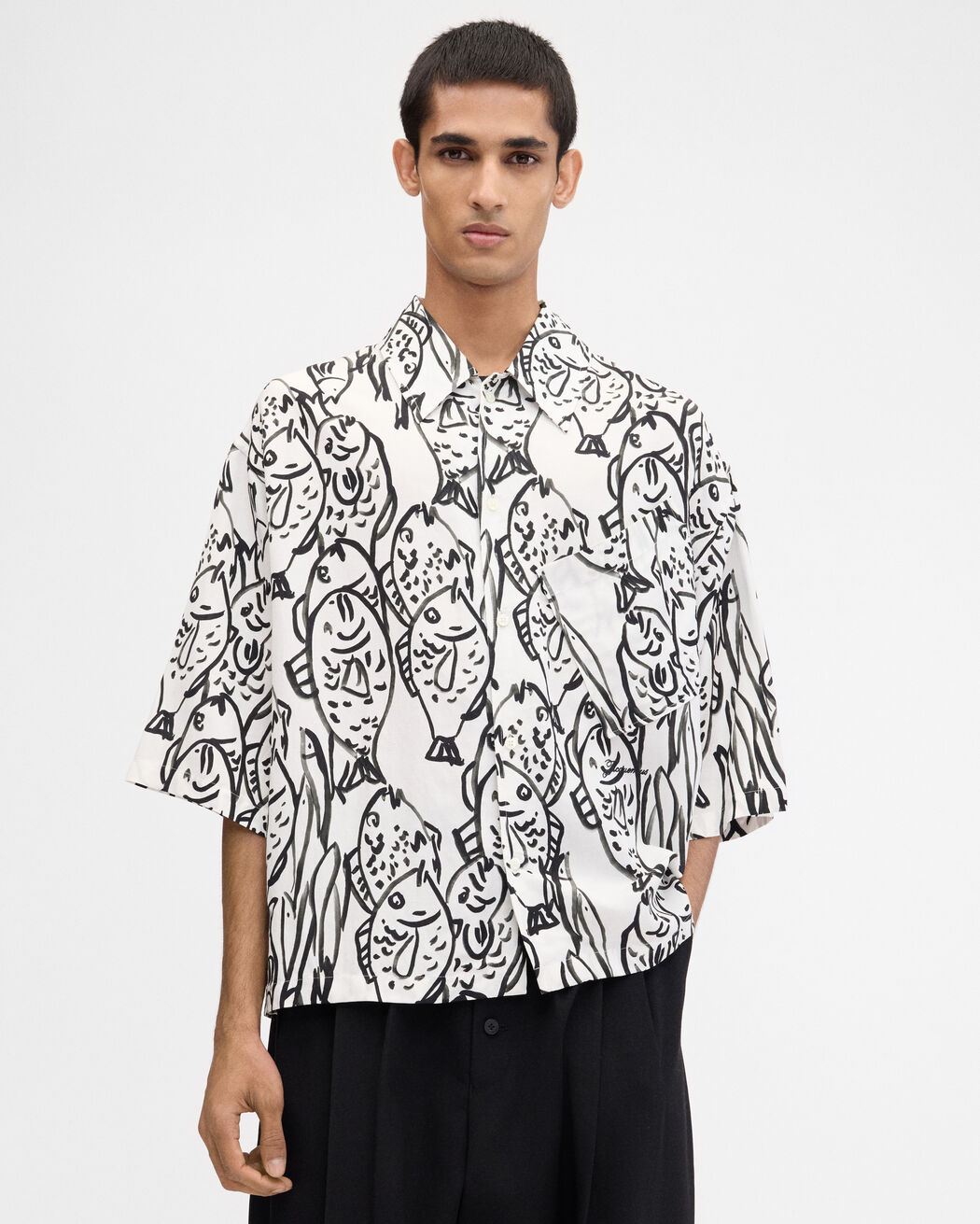 قميص بقصة مربعة مزين بطبعة سمكة.