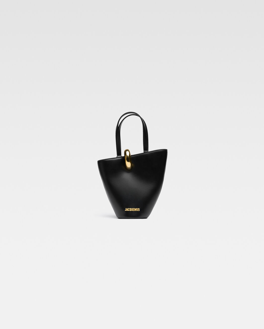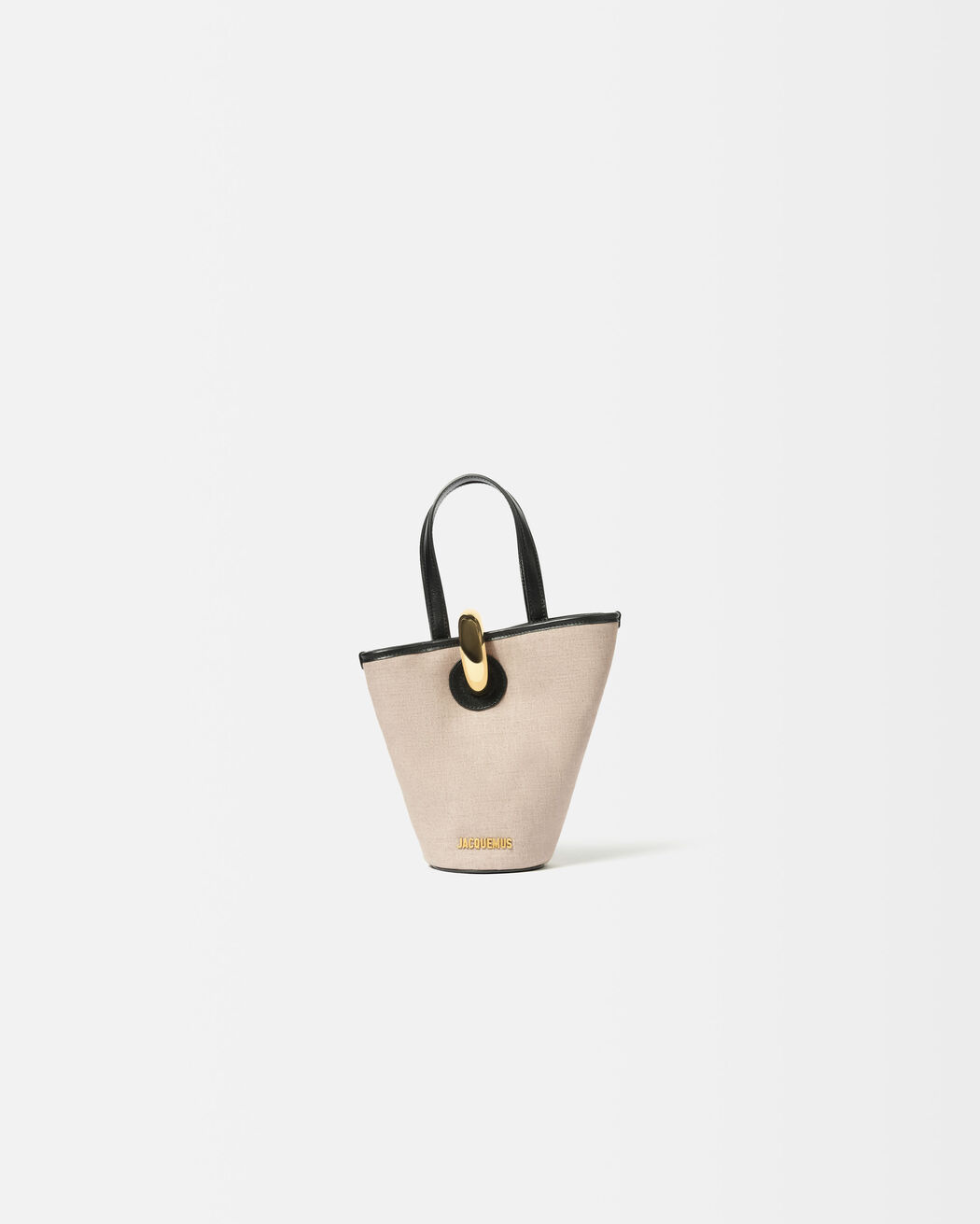 - حقيبة باكيت بتصميم غير متماثل من الكتان وجلد ناعم