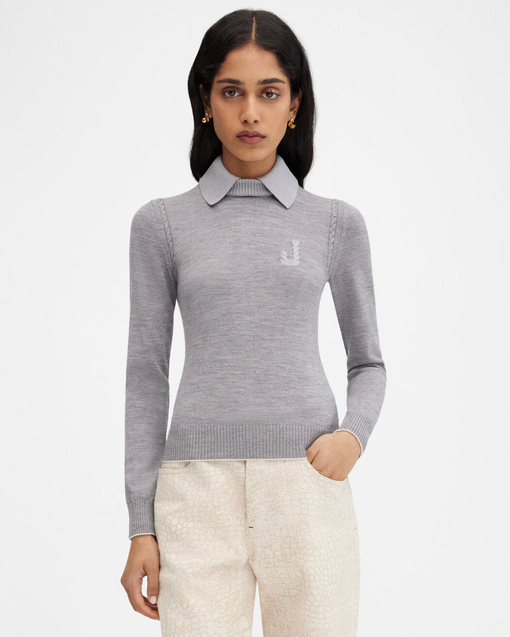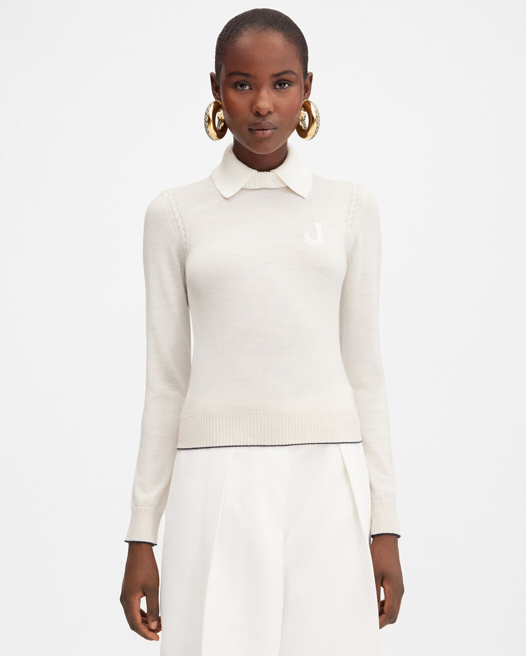 - حافة وأساور أكمام مضلعة مزينة بأشرطة بلون مختلف