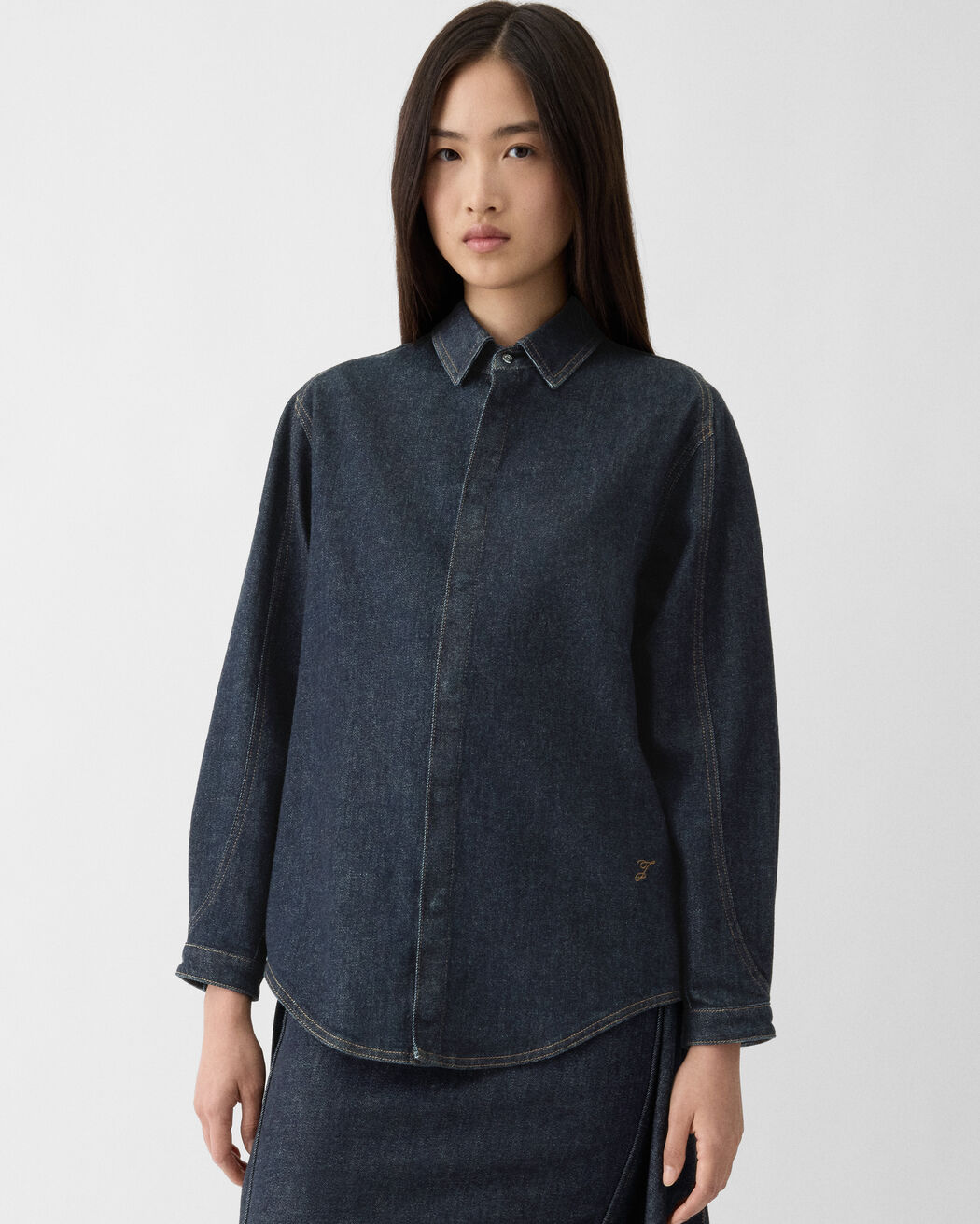A-line denim shirt.