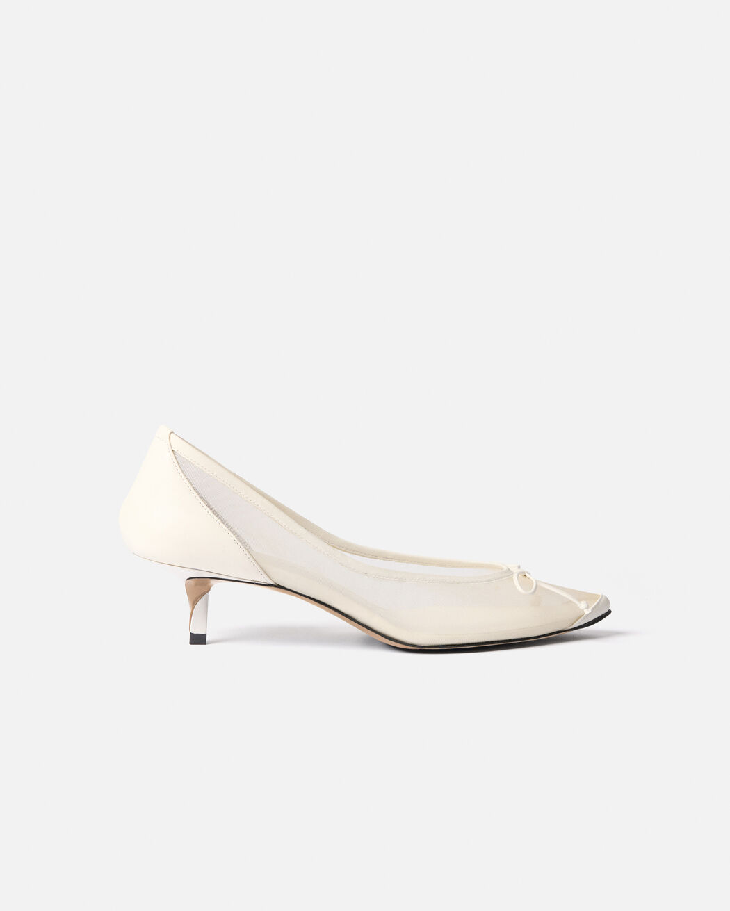 - 4.5cm asymmetric twisted heels with lacquered finish