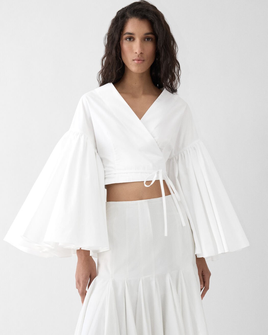 Long-sleeve wrap top.