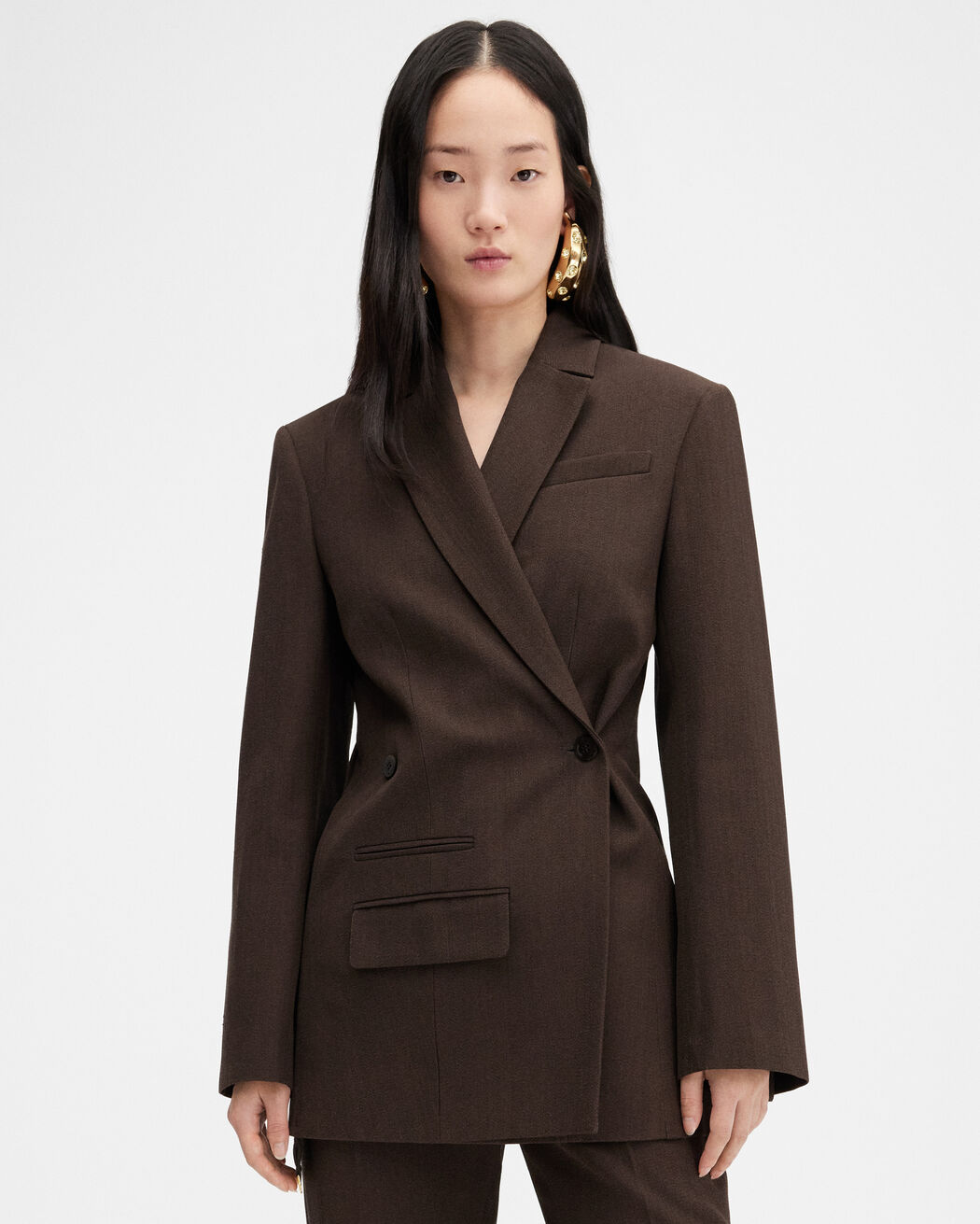 - Sleeve slits and buttonholes with contrast stitch detail The model is 175 cm and wears a size 34.
